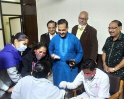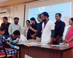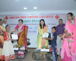 Under the third phase of project Shruti, held at Red Cross Bhavan, Ahmedabad, 157 children suffering from hearing loss since birth were provided with the world’s first non-surgical hearing device by Chief Guest Smt. Sonalben Amitbhai Shah and Guest of Honor Smt. Ritishaben Jaybhai Shah